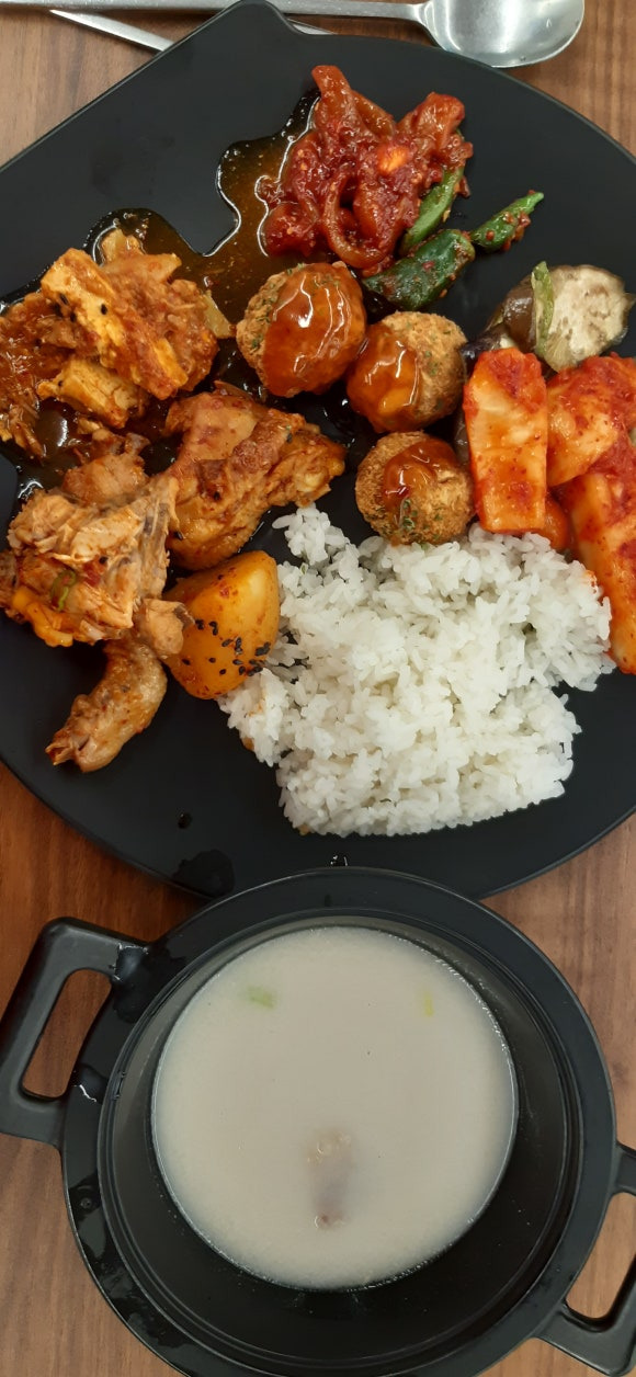 도시락을 포장하기 전에 먼저 식사를 했습니다. 제 한 접시를 가득 채운 음식들을 보니, '대가'라는 이름이 아깝지 않다는 생각이 들었어요.
